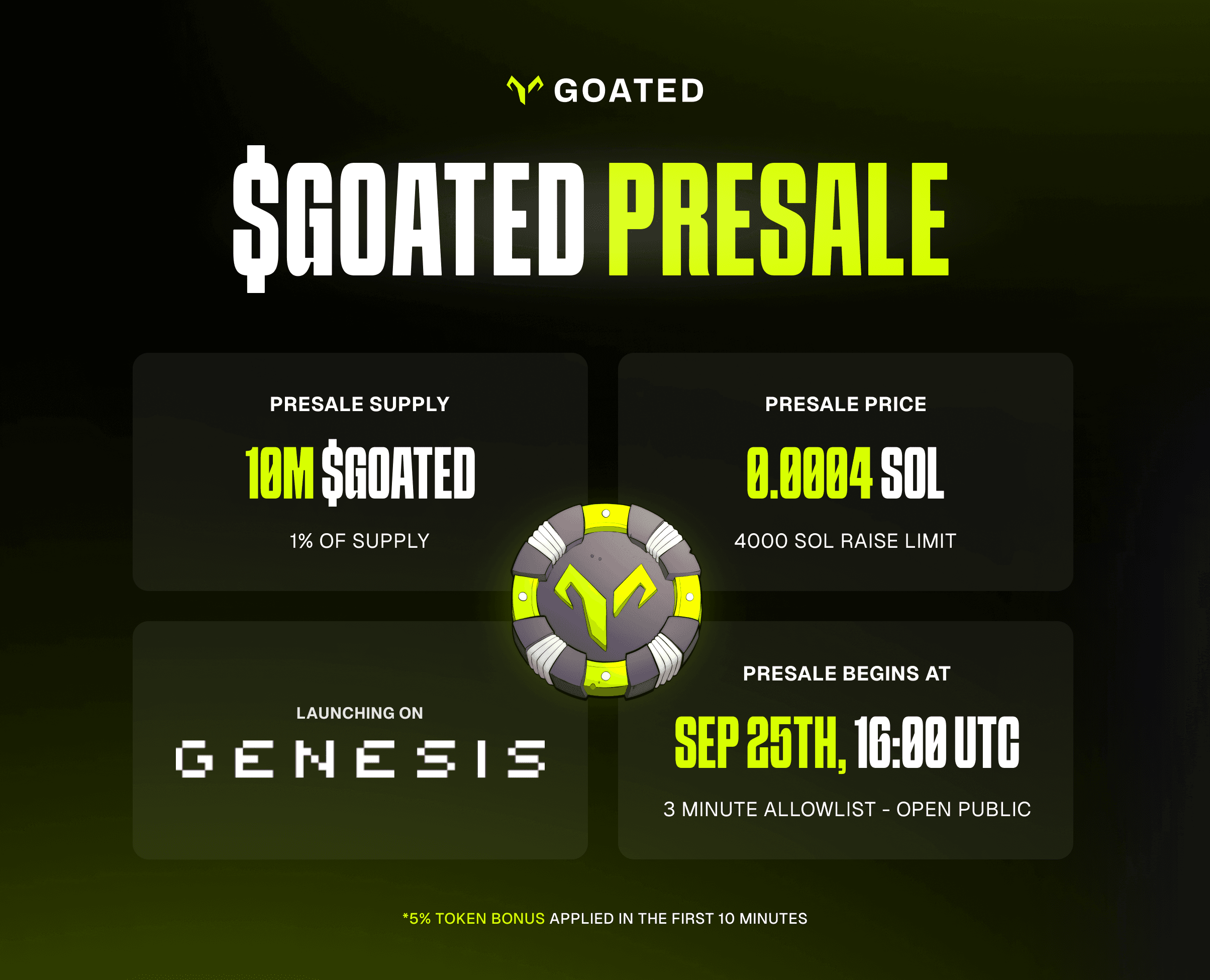 • Presale Portal: https://genesis.goated.com/
